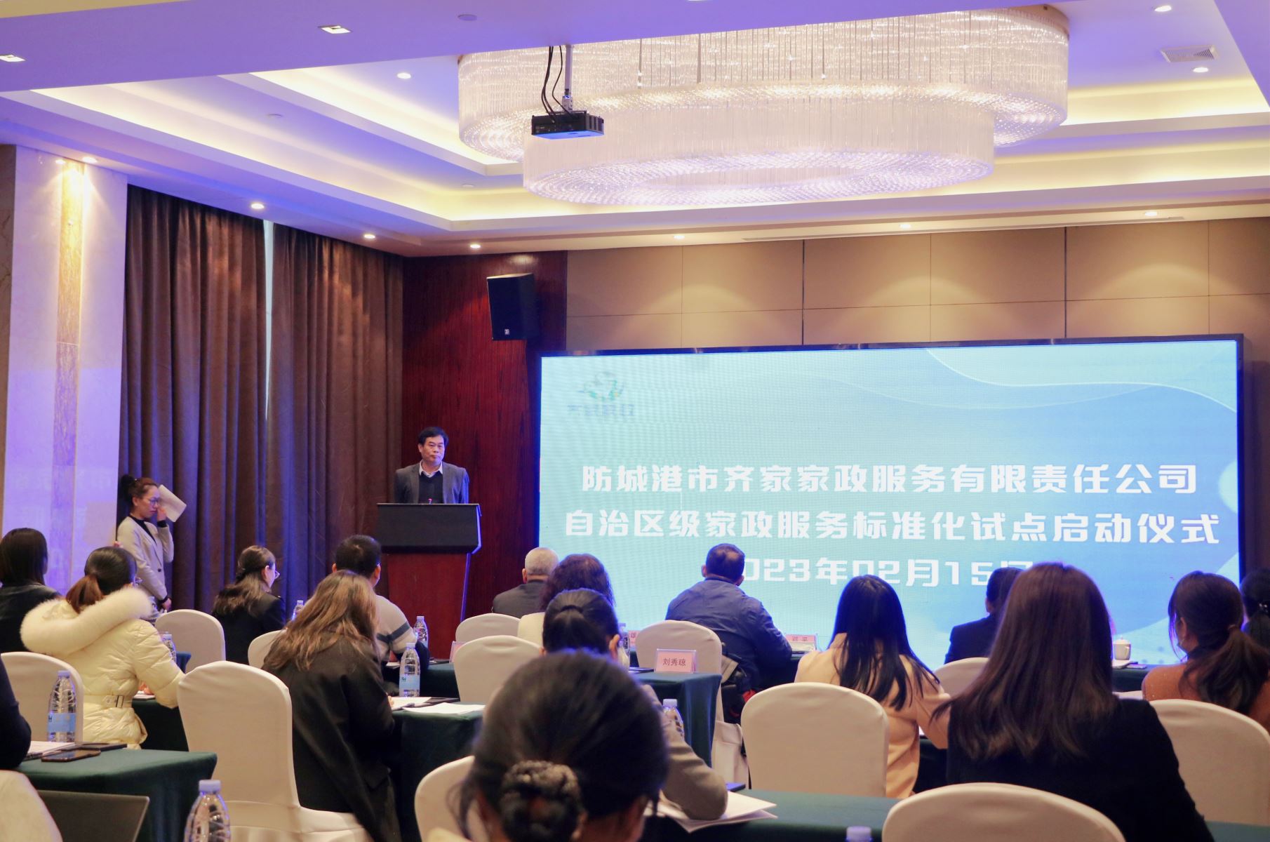 2023年2月15日,防城港市齊家家政服務(wù)有限責(zé)任公司自治區(qū)級(jí)家政服務(wù)標(biāo)準(zhǔn)化試點(diǎn)啟動(dòng)儀式在防城港榮興格朗大酒店會(huì)議室召開。防城港市市場(chǎng)監(jiān)督管理局副局長戴大雄、標(biāo)準(zhǔn)化科科長李燕,防城港市人力資源與社會(huì)保障局人力資源開發(fā)科科長、市職業(yè)技能鑒定中心主任劉永靖,防城港市齊家家政服務(wù)有限責(zé)任公司總經(jīng)理鄭小潔、副總經(jīng)理宋英瑞出席會(huì)議。會(huì)議由防城港市齊家家政服務(wù)有限責(zé)任公司莫燕妮經(jīng)理主持。