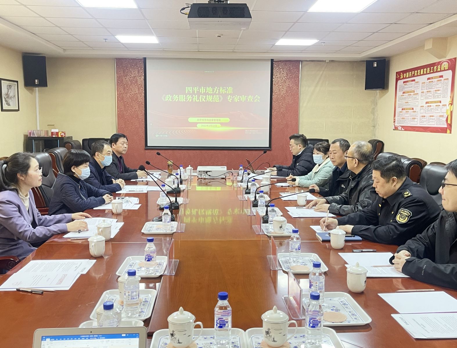 2023年3月22日,四平市地方標準《政務(wù)服務(wù)禮儀規(guī)范》專家審查會在吉林省四平市政務(wù)服務(wù)中心會議室召開。來自國家熱交換產(chǎn)品質(zhì)量檢驗檢測中心、四平市鐵西區(qū)政務(wù)服務(wù)局、梨樹縣政務(wù)服務(wù)和數(shù)字化建設(shè)管理局、吉林師范大學(xué)、四平市應(yīng)急管理局的五名專家組成標準審查專家組。四平市市場監(jiān)督管理局副局長魏巖忠、標準化科科長張龍,四平市政務(wù)服務(wù)和數(shù)字化建設(shè)管理局副局長生明輝出席會議。會議由四平市市場監(jiān)督管理局謝榮輝主持。