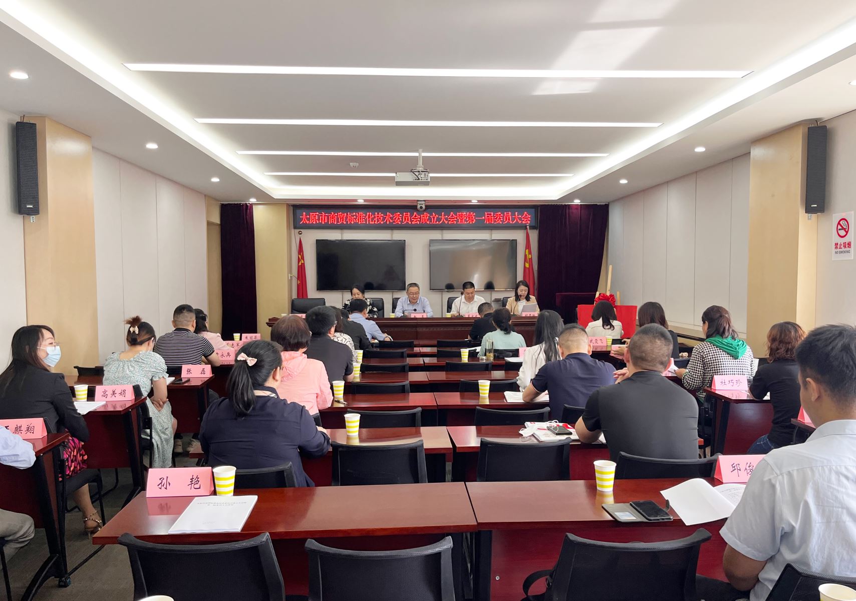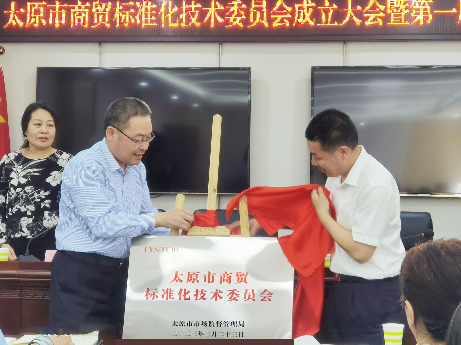 會上,夏文武介紹參會人員及商貿(mào)標委會籌建情況,褚鮮萍宣讀了《關于成立太原市商貿(mào)標準化技術委員會的批復》。夏文武和趙勇共同為太原市商貿(mào)標準化技術委員會進行了揭牌;與會領導為委員代表頒發(fā)了聘書。