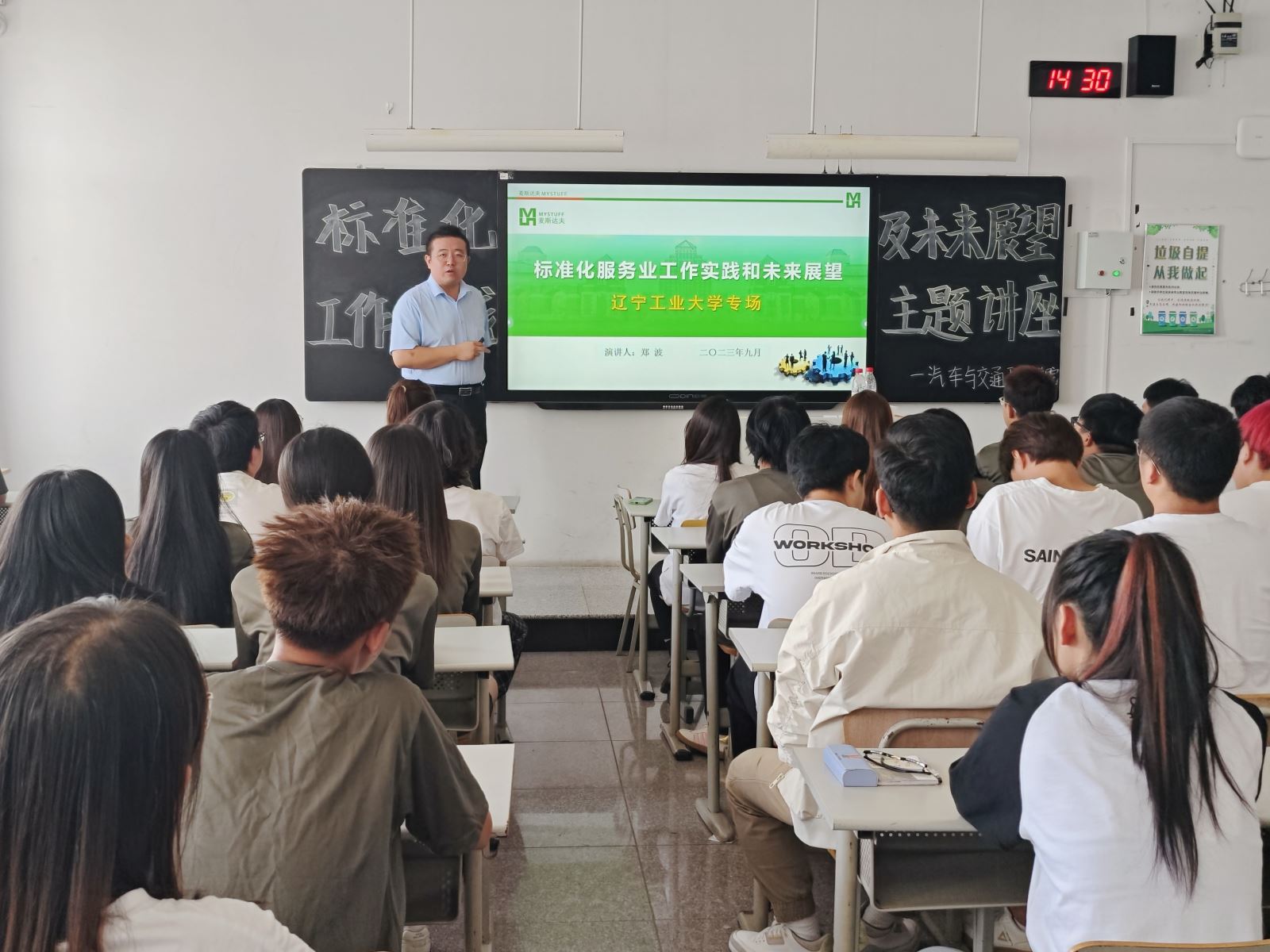 會(huì)后,鄭波為遼寧工業(yè)大學(xué)標(biāo)準(zhǔn)化工程專(zhuān)業(yè)全體學(xué)生作了題為《標(biāo)準(zhǔn)化服務(wù)業(yè)工作實(shí)踐和未來(lái)展望》的專(zhuān)題授課。簽約活動(dòng)前,鄭波一行還在李剛院長(zhǎng)帶領(lǐng)下參觀了汽車(chē)與交通工程學(xué)院實(shí)驗(yàn)室、萬(wàn)得車(chē)隊(duì)。