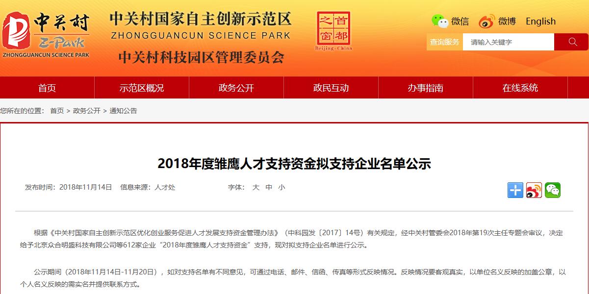 根據(jù)《中關(guān)村國家自主創(chuàng)新示范區(qū)優(yōu)化創(chuàng)業(yè)服務(wù)促進(jìn)人才發(fā)展支持資金管理辦法》(中科園發(fā)〔2017〕14號)有關(guān)規(guī)定,經(jīng)中關(guān)村管委會(huì)2018年第19次主任專題會(huì)審議,決定給予北京麥斯達(dá)夫科技有限公司(“麥斯達(dá)夫標(biāo)準(zhǔn)化事務(wù)所”)等612家企業(yè)“2018年度雛鷹人才支持資金”支持。