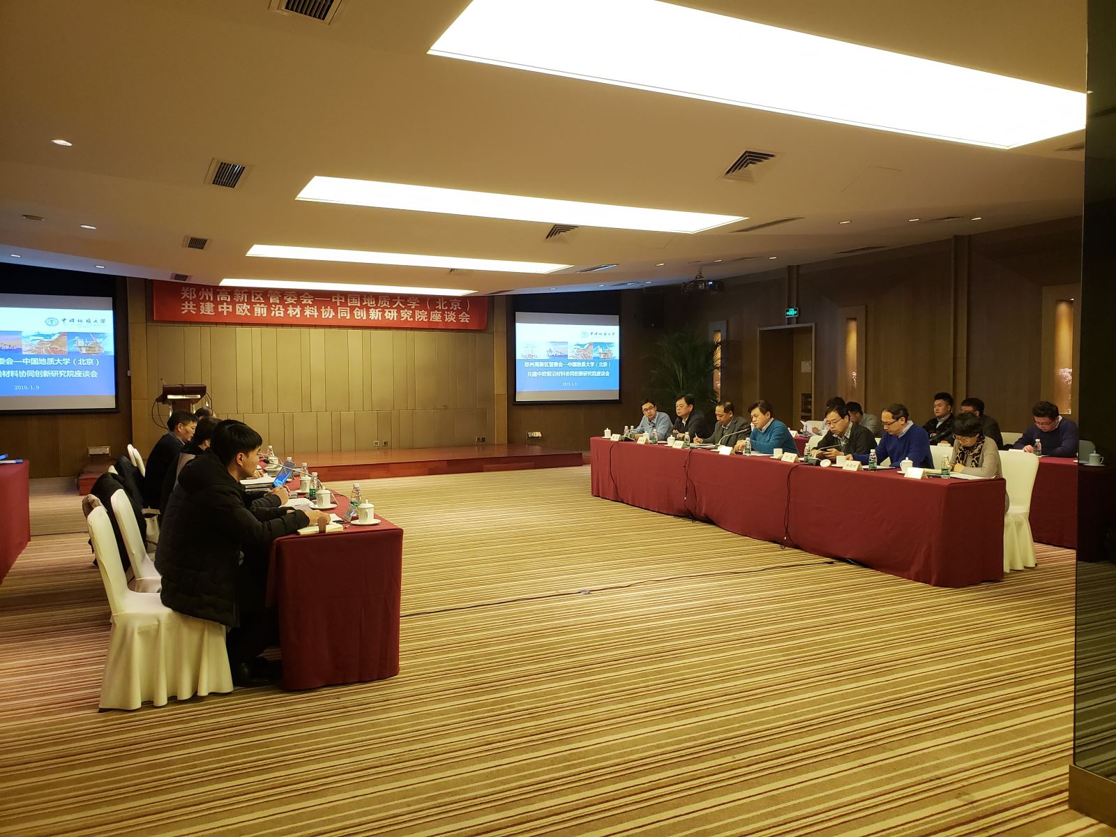 2019年1月9日,“鄭州市高新區(qū)管委會(huì)—中國(guó)地質(zhì)大學(xué)(北京)”共建中歐前沿材料協(xié)同創(chuàng)新研究院座談會(huì)在京召開(kāi)。鄭州高新區(qū)黨工委書記、管委會(huì)主任王新亭,改革開(kāi)放領(lǐng)導(dǎo)小組副組長(zhǎng)兼辦公室主任鄭彥松、投資促進(jìn)中心主任張煒煒、黨政辦公室副主任魯華雨、投資促進(jìn)中心副主任王楨等赴京參加會(huì)議,中國(guó)地質(zhì)大學(xué)(北京)副校長(zhǎng)萬(wàn)力、校長(zhǎng)助理兼發(fā)展規(guī)劃處處長(zhǎng)于光、科技處處長(zhǎng)趙志丹、珠寶學(xué)院黨委副書記周彥、科技處副處長(zhǎng)楊曉剛,工程技術(shù)學(xué)院副院長(zhǎng)岳文、王成彪教授等出席會(huì)議,麥斯達(dá)夫首席執(zhí)行官鄭波、高級(jí)副總裁李鵬、鄭州公司總經(jīng)理李寧等參加活動(dòng)。