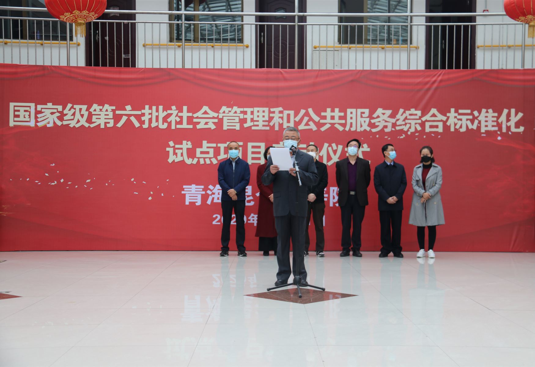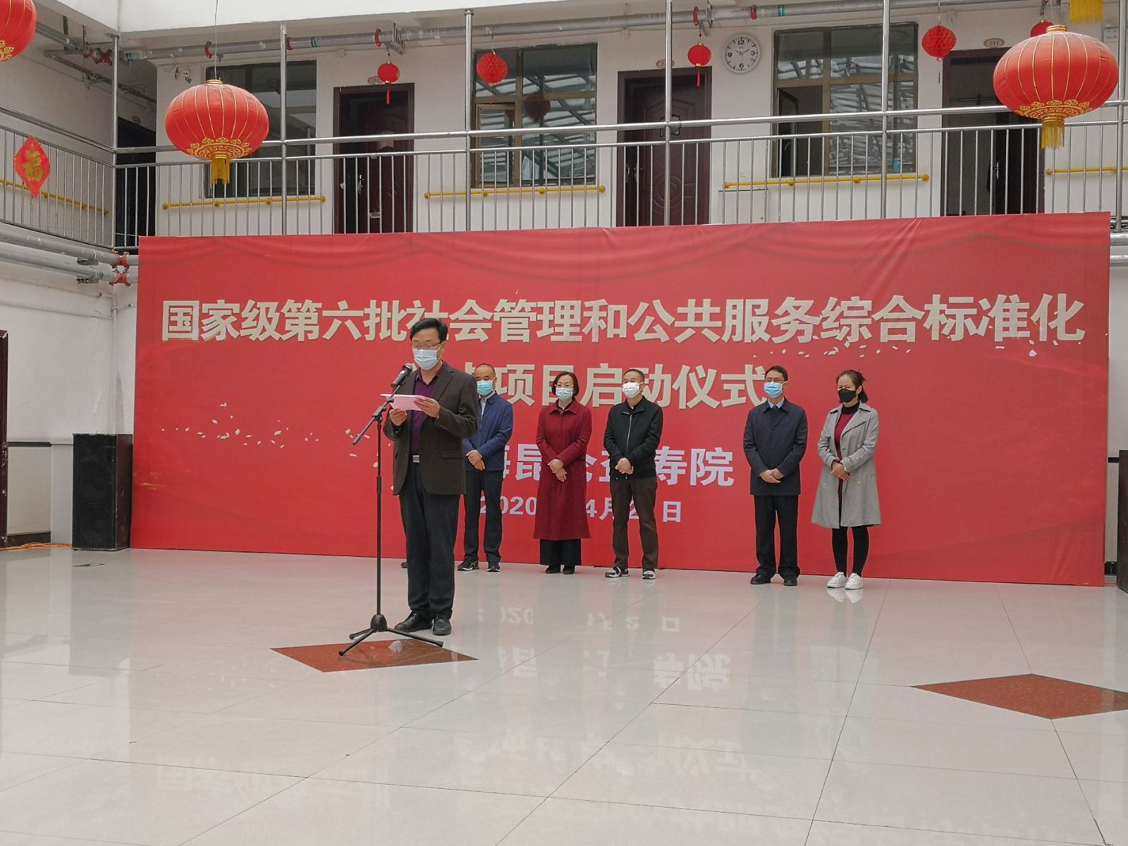 2020年4月21日,第六批國家級社會管理和公共服務(wù)綜合標(biāo)準(zhǔn)化試點項目啟動儀式在青海昆侖益壽院召開。青海省市場監(jiān)督管理局標(biāo)準(zhǔn)化處處長秦華成、副處長池曉虹、主任科員王光明,青海省民政廳養(yǎng)老服務(wù)處一級調(diào)研員肖瑄,西寧市市場監(jiān)督管理局副局長丁軍,西寧市市場監(jiān)督管理局標(biāo)準(zhǔn)化與認(rèn)證認(rèn)可監(jiān)督管理科科長李永剛、三級主任科員馬振華,西寧市民政局養(yǎng)老服務(wù)科科長靳家波,西寧市城北區(qū)民政局養(yǎng)老服務(wù)科科長趙永蓮,西寧市城北區(qū)大堡子市場監(jiān)督管理所領(lǐng)導(dǎo)等出席活動。青海昆侖益壽院院長李進(jìn)、院內(nèi)全體職工,麥斯達(dá)夫標(biāo)準(zhǔn)化事務(wù)所首席執(zhí)行官鄭波參加啟動儀式。啟動儀式由昆侖益壽院項目部部長張振娟主持。