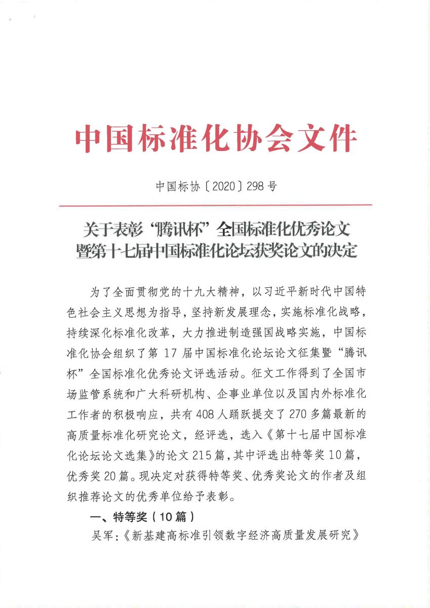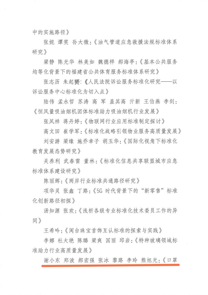 我所論文《口罩生產(chǎn)企業(yè)產(chǎn)品標準技術指標比對分析》獲第十七屆中國標準化論壇優(yōu)秀獎