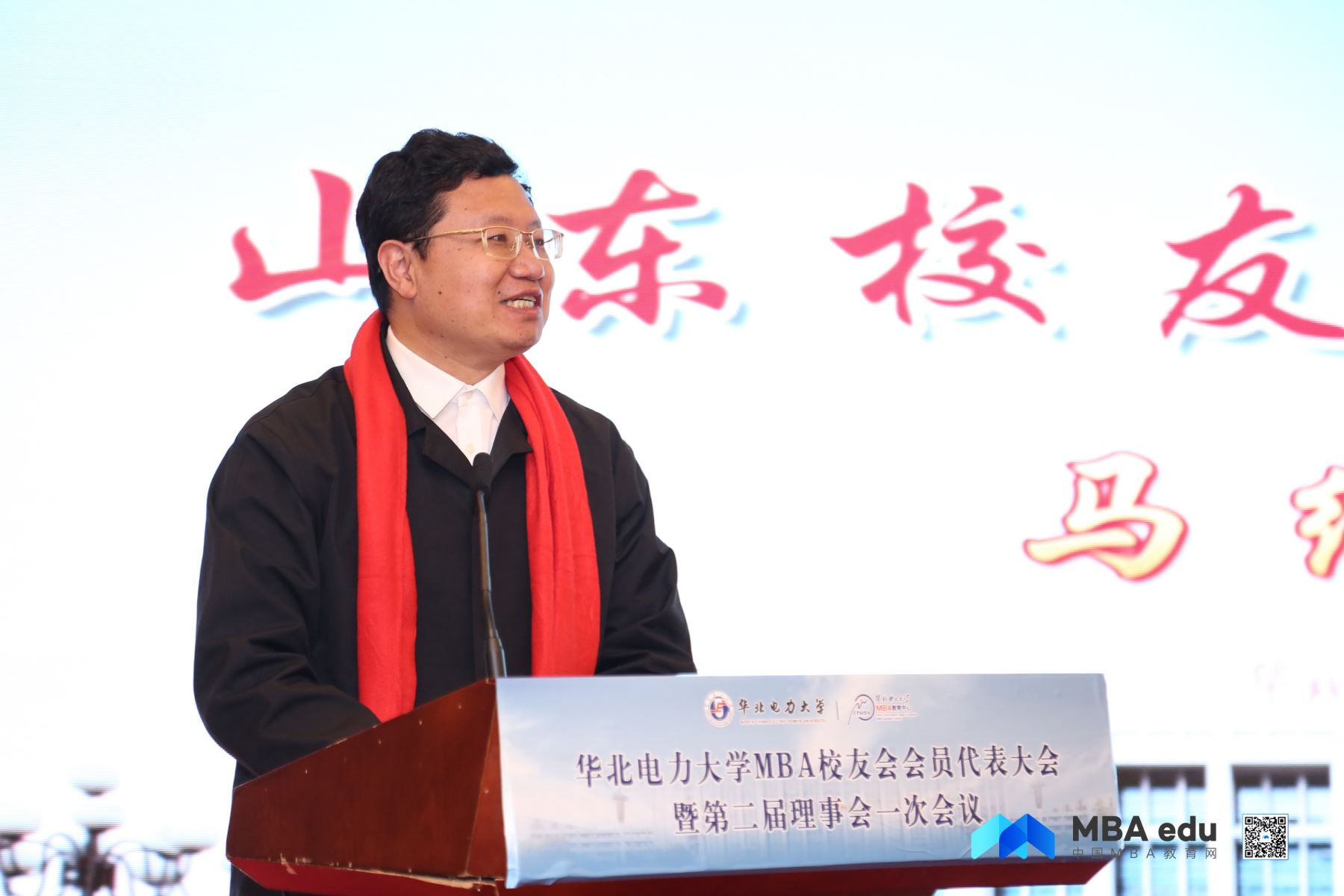 值此盛會(huì),華電MBA校友會(huì)收到了各大高校及社會(huì)各界發(fā)來(lái)的賀信賀電。主持人宣讀了來(lái)自南京大學(xué)的賀信。會(huì)議第一階段尾聲,與會(huì)人員全體起立,奏唱了華北電力大學(xué)校歌。