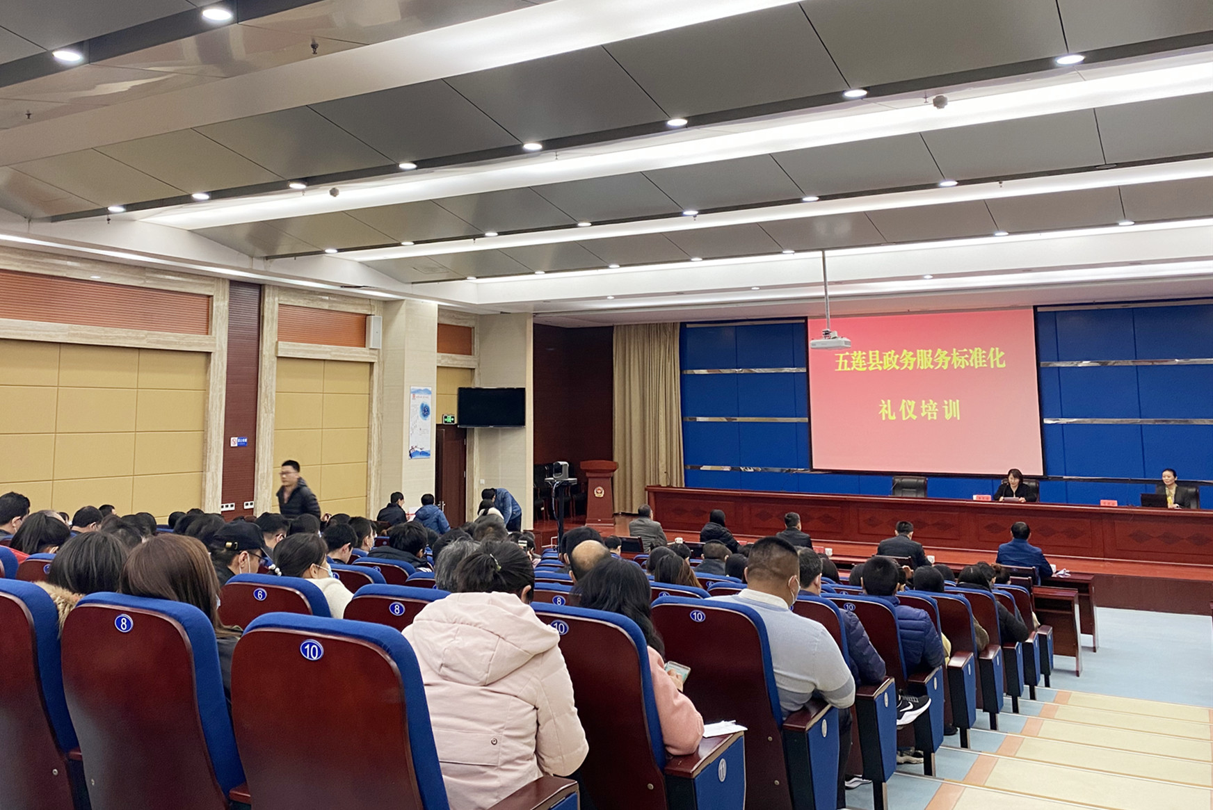 2020年11月22日,為保障省級(jí)政務(wù)服務(wù)標(biāo)準(zhǔn)化試點(diǎn)順利通過驗(yàn)收,努力建設(shè)一流營(yíng)商環(huán)境,提升政務(wù)服務(wù)人員業(yè)務(wù)素質(zhì)和服務(wù)水平,五蓮縣政務(wù)服務(wù)管理辦公室組織縣直各政務(wù)服務(wù)分廳、進(jìn)駐大廳縣直部門單位負(fù)責(zé)人,全體窗口人員以及行政審批局全體人員召開政務(wù)服務(wù)標(biāo)準(zhǔn)化禮儀培訓(xùn)會(huì)。培訓(xùn)會(huì)在日照市五蓮縣公安局一樓西報(bào)告廳召開。縣行政審批服務(wù)局全體領(lǐng)導(dǎo)班子出席本次會(huì)議。會(huì)議由縣行政審批服務(wù)局副局長(zhǎng)李玉潔主持,麥斯達(dá)夫特聘禮儀培訓(xùn)專家肖奕安進(jìn)行授課。