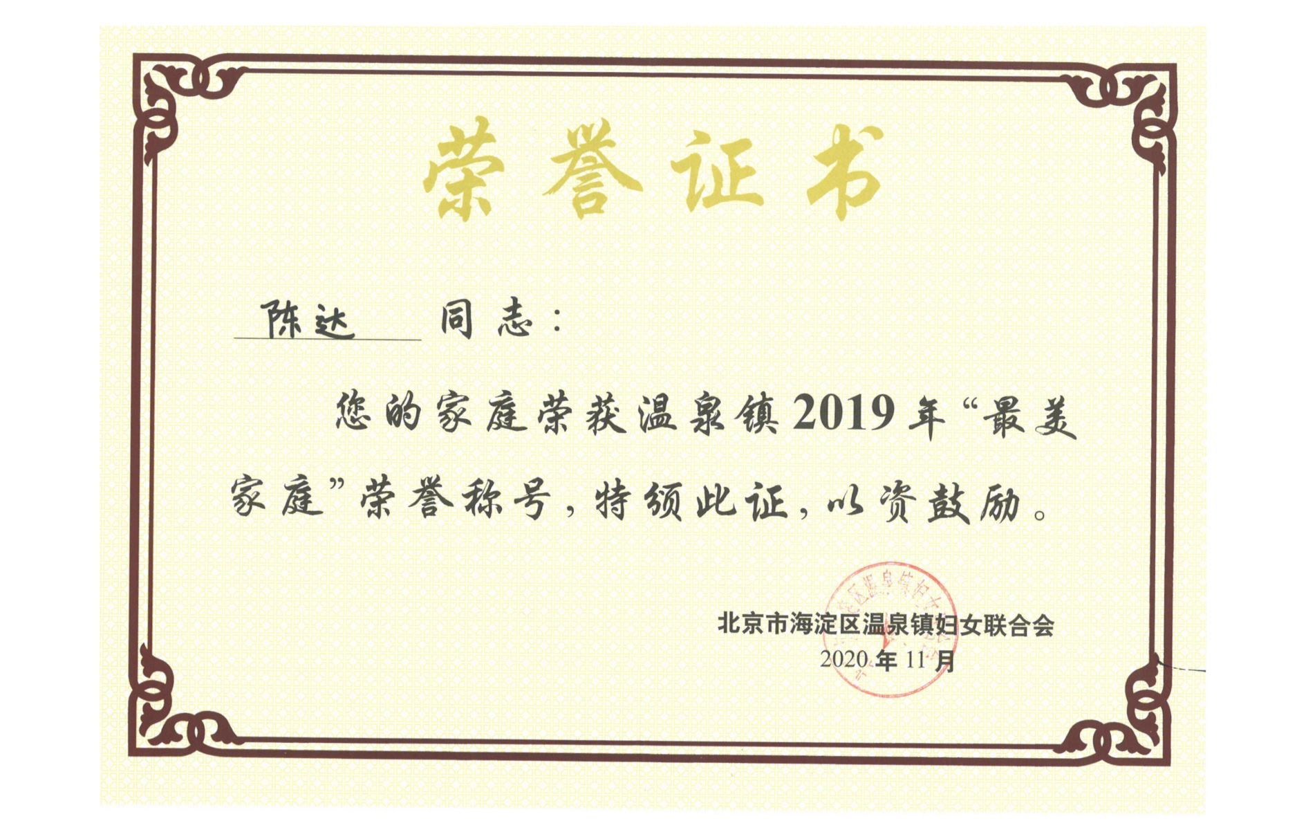 近日,麥斯達(dá)夫王超、王釗柱、陳達(dá)、謝小東榮獲2019年“最美家庭”榮譽(yù)稱號。
