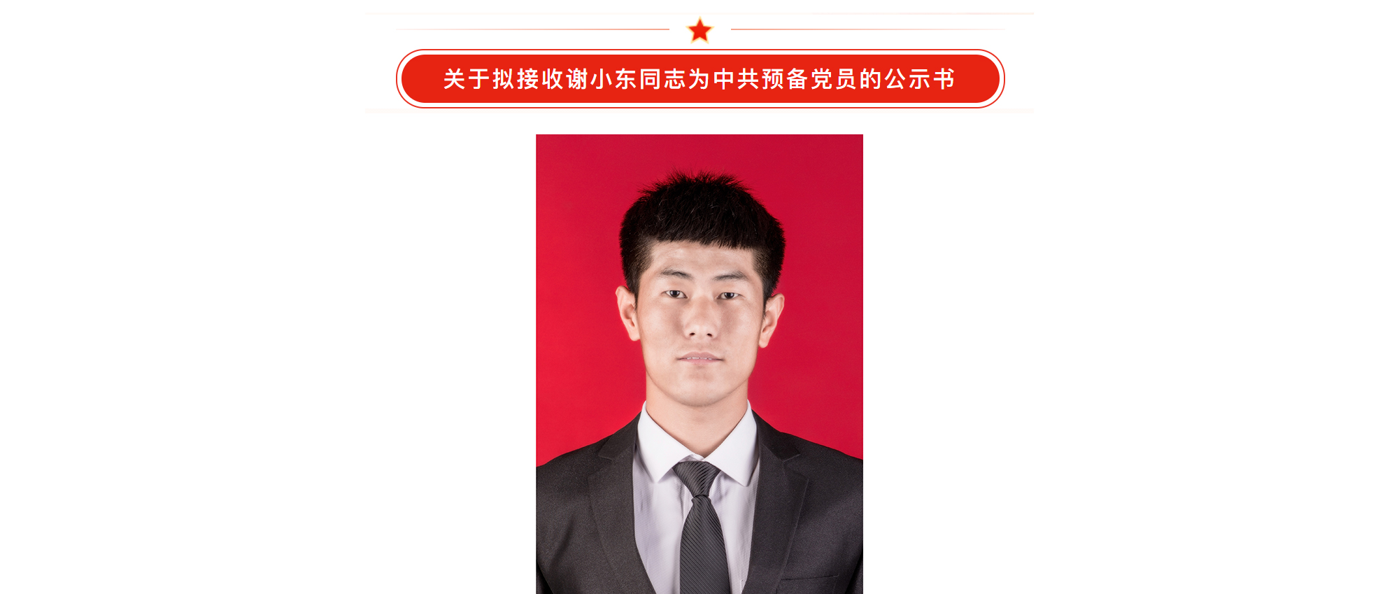 關(guān)于擬接收謝小東同志為中共預(yù)備黨員的公示書(shū)