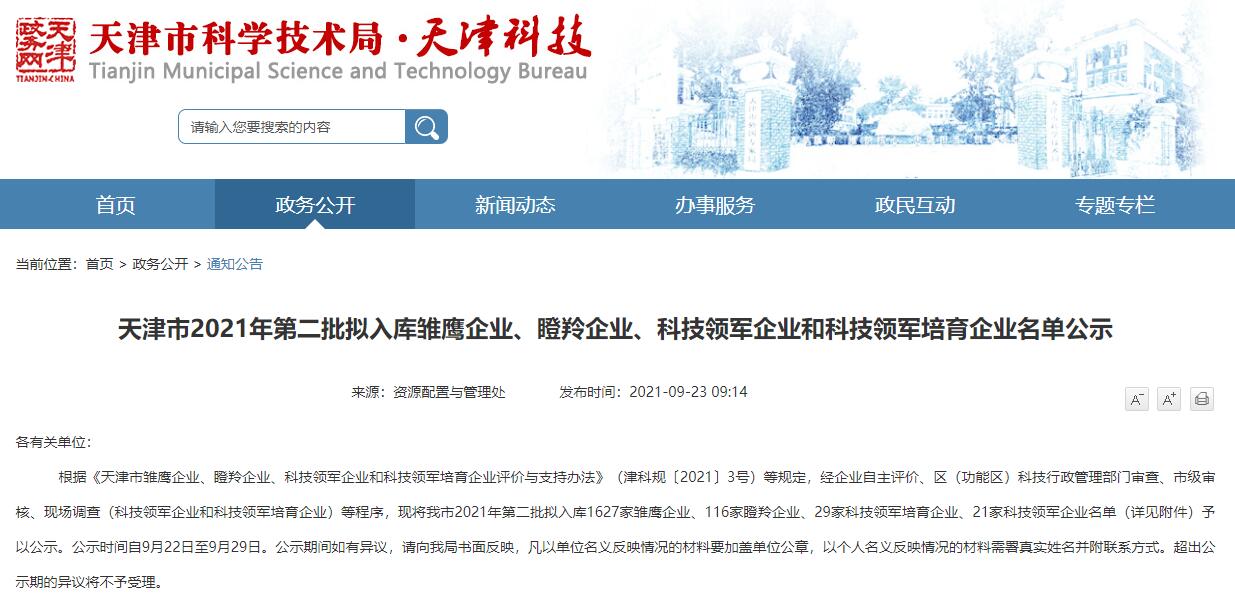 根據(jù)《天津市雛鷹企業(yè)、瞪羚企業(yè)、科技領(lǐng)軍企業(yè)和科技領(lǐng)軍培育企業(yè)評價與支持辦法》(津科規(guī)〔2021〕3號)等規(guī)定,經(jīng)企業(yè)自主評價、區(qū)(功能區(qū))科技行政管理部門審查、市級審核、現(xiàn)場調(diào)查(科技領(lǐng)軍企業(yè)和科技領(lǐng)軍培育企業(yè))等程序,天津市2021年第二批將入庫1627家雛鷹企業(yè)、116家瞪羚企業(yè)、29家科技領(lǐng)軍培育企業(yè)、21家科技領(lǐng)軍企業(yè)。其中,在天津市2021年第二批入庫雛鷹企業(yè)名單中,天津麥斯達夫標(biāo)準(zhǔn)化服務(wù)有限公司榮耀位列其中。
