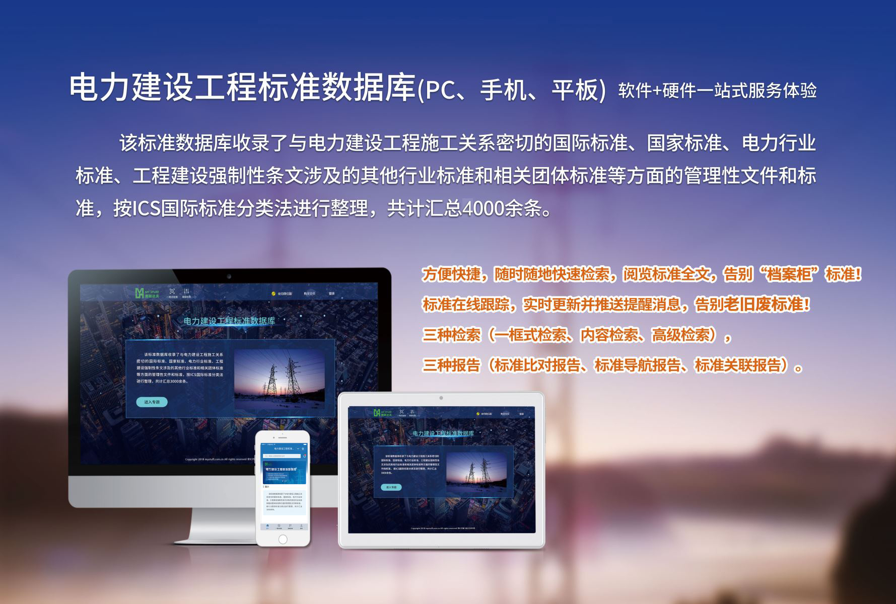 電力建設(shè)工程標(biāo)準(zhǔn)數(shù)據(jù)庫(kù)收錄了與電力建設(shè)工程施工關(guān)系密切的國(guó)際標(biāo)準(zhǔn)、國(guó)家標(biāo)準(zhǔn)、電力行業(yè)標(biāo)準(zhǔn)、工程建設(shè)強(qiáng)制性條文涉及的其他行業(yè)標(biāo)準(zhǔn)和相關(guān)團(tuán)體標(biāo)準(zhǔn)等方面的管理性文件和標(biāo)準(zhǔn), 按ICS國(guó)際標(biāo)準(zhǔn)分類法進(jìn)行整理,共計(jì)匯總4000余條。
