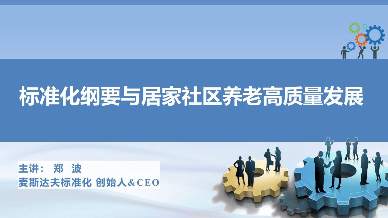 鄭波以“標(biāo)準(zhǔn)化綱要與居家社區(qū)養(yǎng)老高質(zhì)量發(fā)展”為題展開培訓(xùn),介紹了國家標(biāo)準(zhǔn)化發(fā)展綱要、實施標(biāo)準(zhǔn)化的重要戰(zhàn)略意義、標(biāo)準(zhǔn)化基礎(chǔ)原理,講解了標(biāo)準(zhǔn)化試點的目標(biāo)任務(wù)、工作步驟、實施路徑。