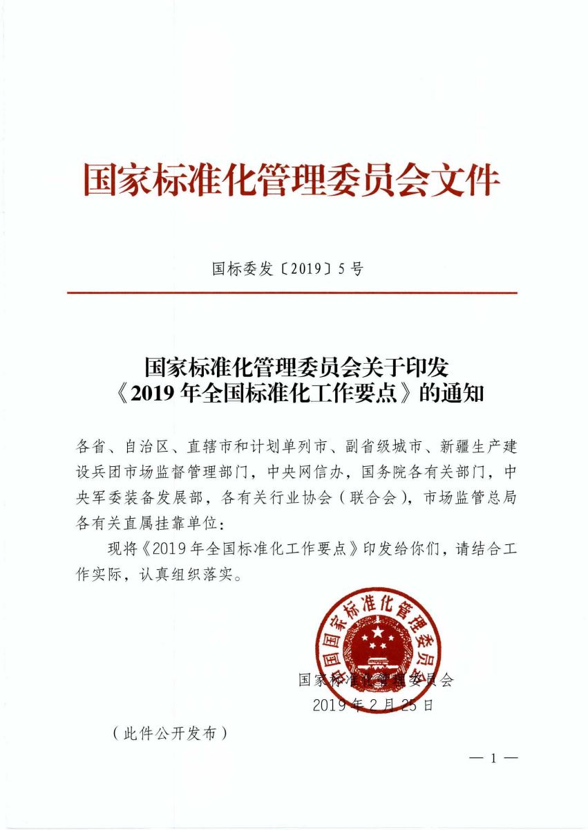 2019年全國標(biāo)準(zhǔn)化工作要點(diǎn)(點(diǎn)擊下載查看文件全文)