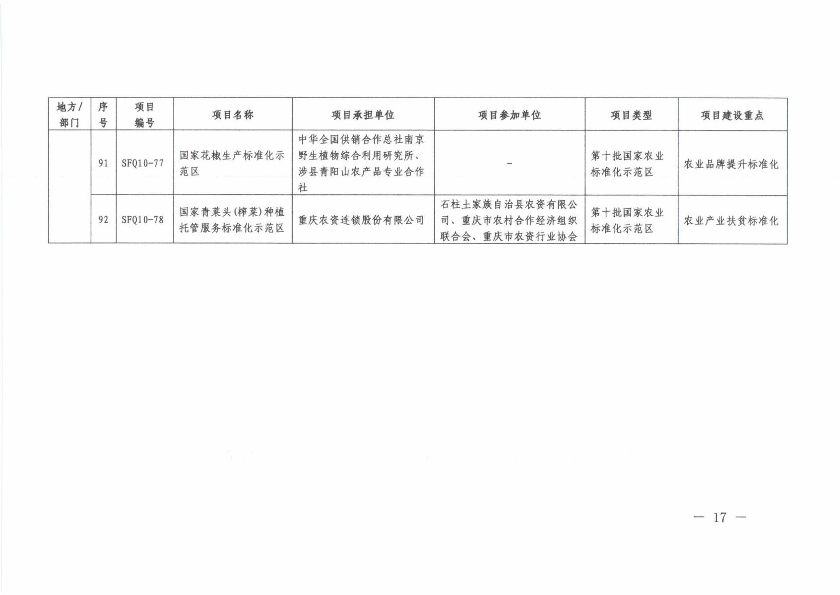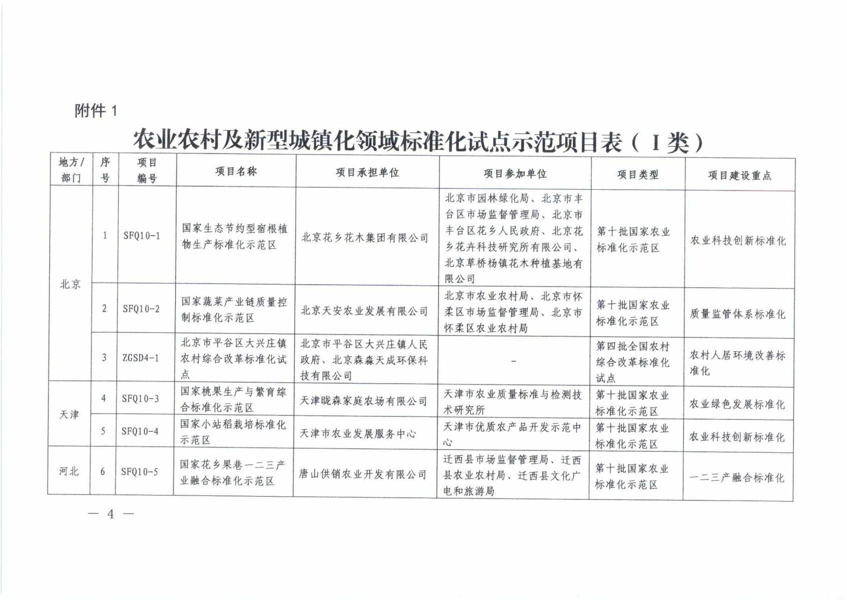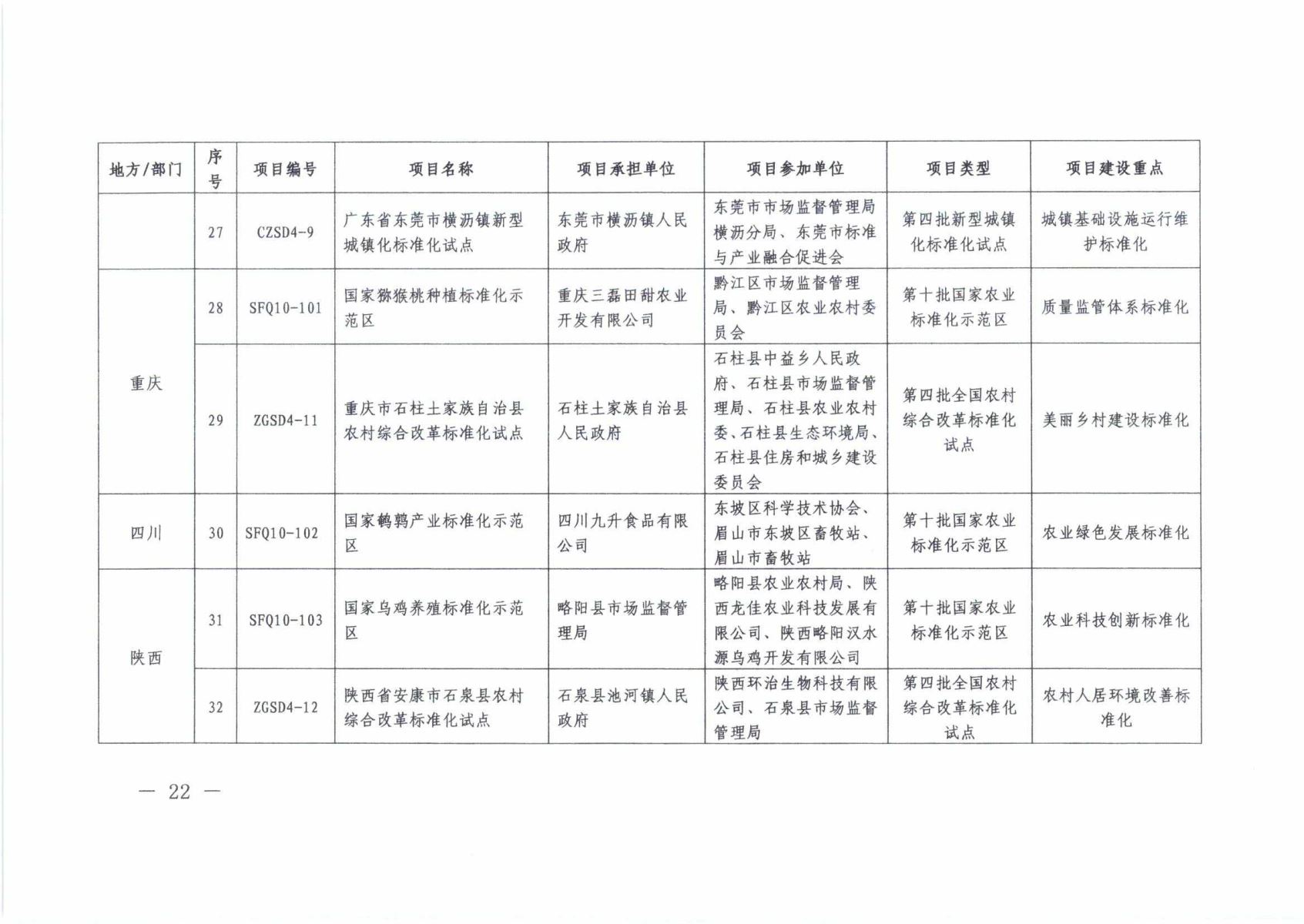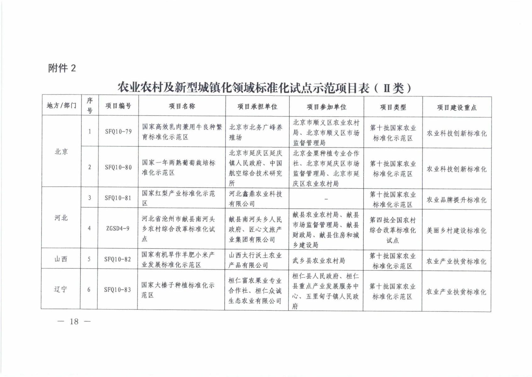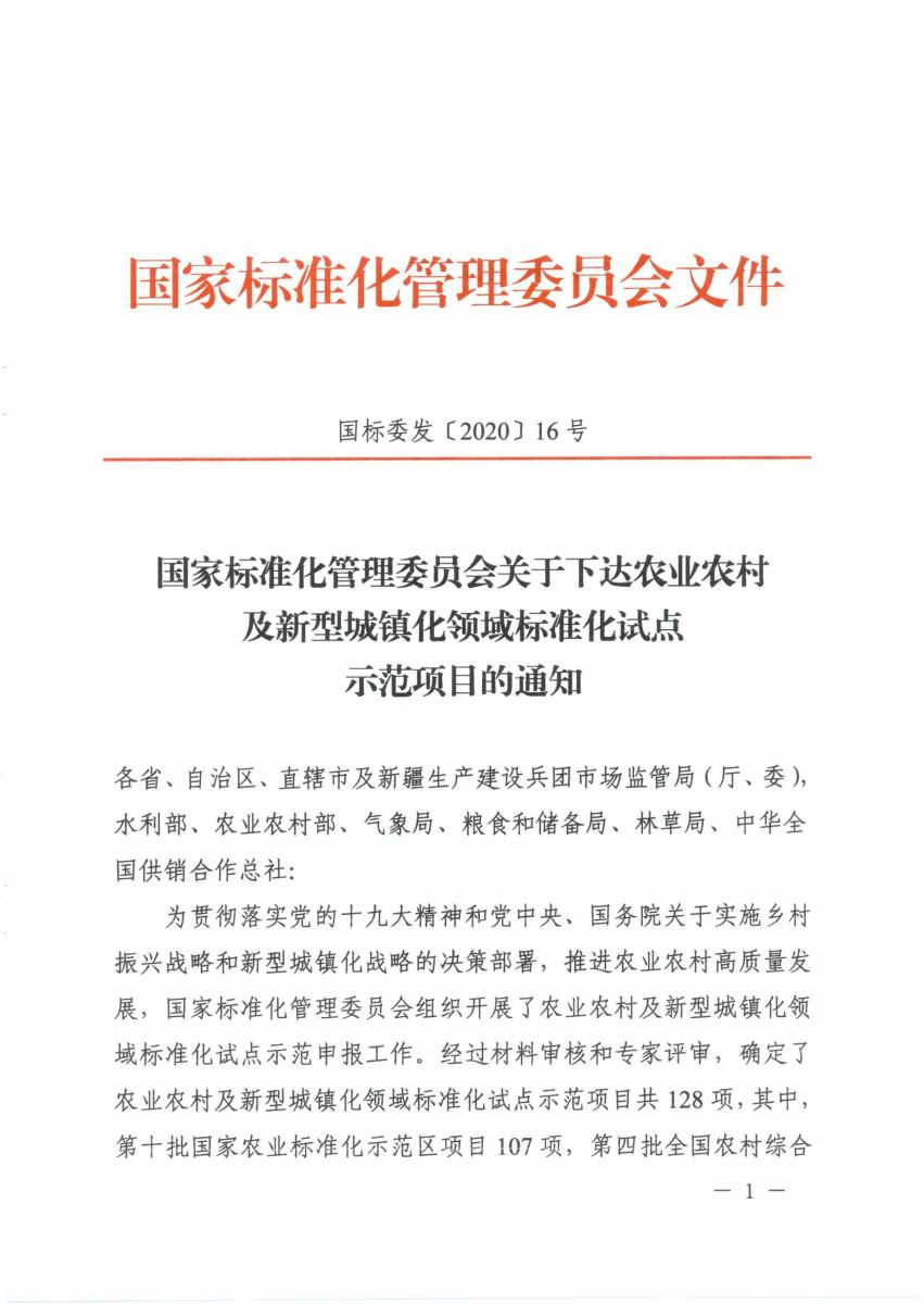 國家標(biāo)準(zhǔn)化管理委員會關(guān)于下達農(nóng)業(yè)農(nóng)村及新型城鎮(zhèn)化領(lǐng)域標(biāo)準(zhǔn)化試點示范項目的通知