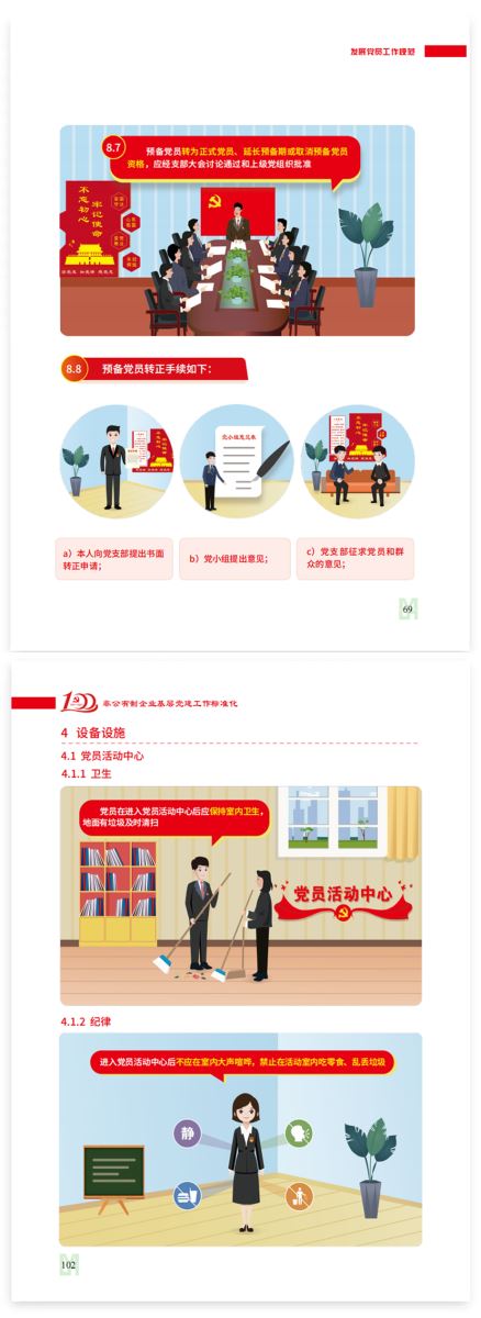 本書堅(jiān)持以中國(guó)特色社會(huì)主義理論體系為指導(dǎo),貫徹落實(shí)習(xí)近平總書記系列重要講話精神和治國(guó)理政新理念新思想新戰(zhàn)略,依據(jù)《中國(guó)共產(chǎn)黨章程》《中國(guó)共產(chǎn)黨支部工作條例(試行)》《關(guān)于加強(qiáng)和改進(jìn)非公有制企業(yè)黨的建設(shè)工作的意見》等黨內(nèi)法規(guī)和文件,以標(biāo)準(zhǔn)化專業(yè)視角,本著針對(duì)性高、實(shí)操性強(qiáng)、簡(jiǎn)明易懂的原則,全書以“標(biāo)準(zhǔn)圖解版”的形式呈現(xiàn),一共繪制了270張圖片,每一個(gè)場(chǎng)景、每一個(gè)細(xì)小元素均由設(shè)計(jì)師精心繪制,相信本書能成為非公企業(yè)開展黨建工作的普及性讀本和實(shí)用工具書。